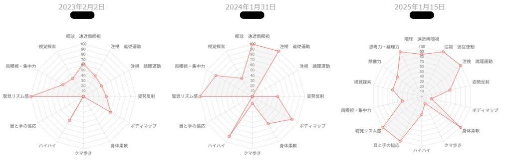 - 視覚 ・身体(感覚、反射) ・脳(認知) ・メンタル(思考) ・社会性(コミュニケーション)