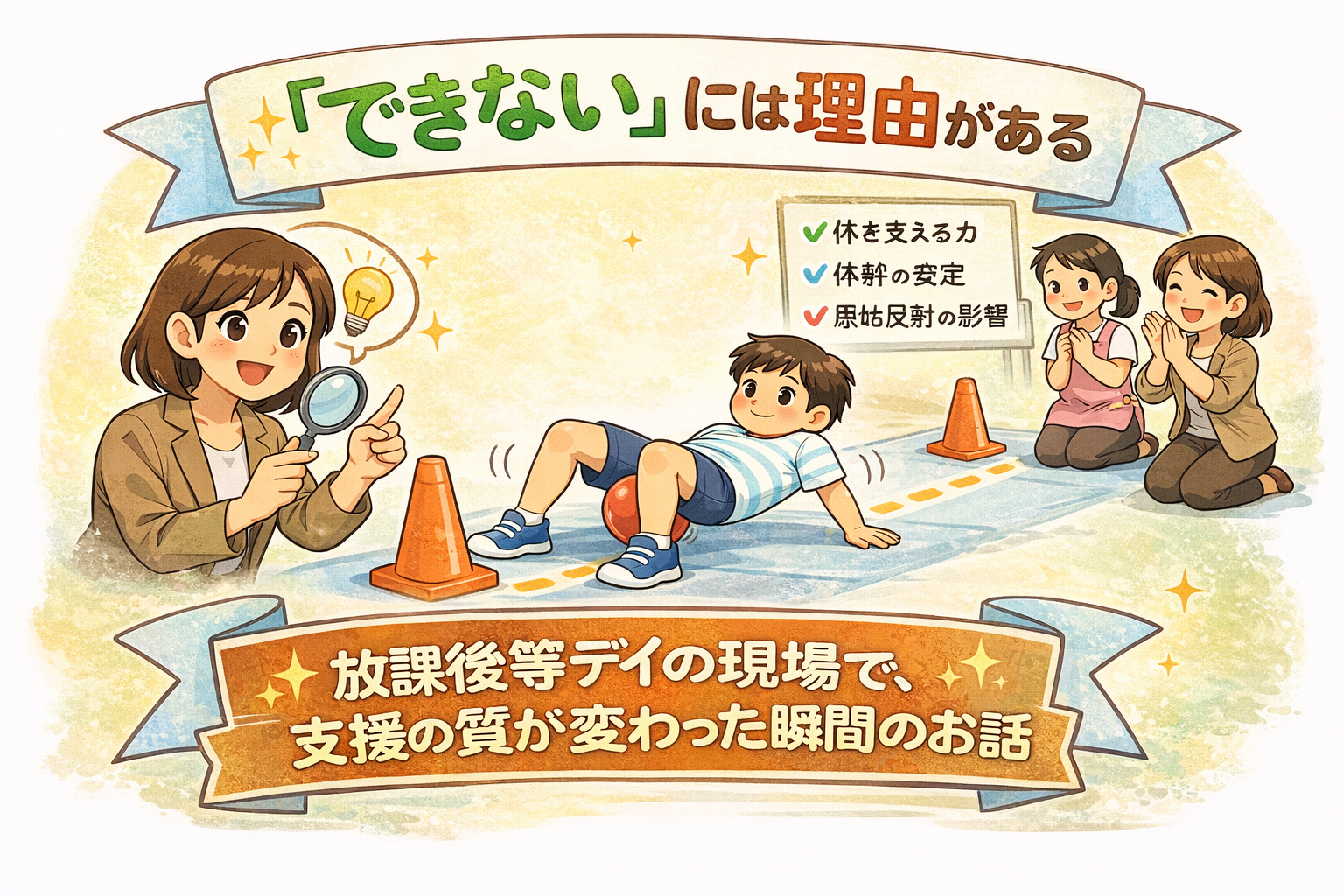 現場では「筋力がないのかな?」「原始反射が残ってる?」と不安になりますよね。