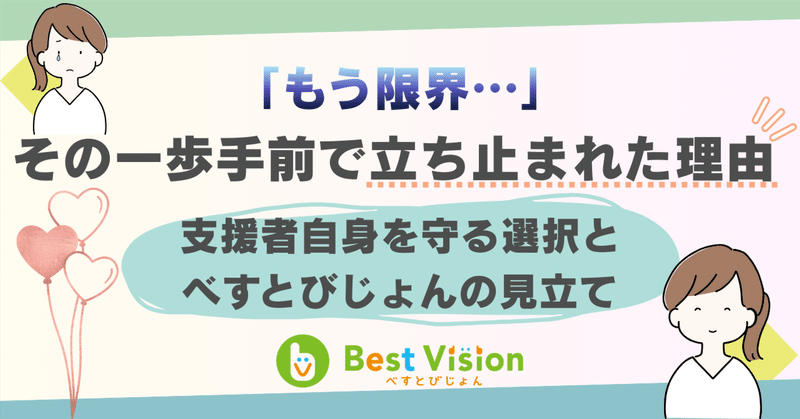 「もう限界…」その一歩手前で立ち止まれた理由 〜支援者自身を守る選択と、べすとびじょんの見立て〜